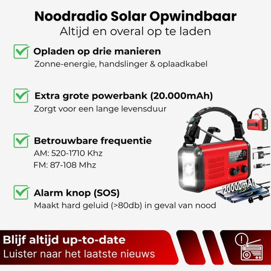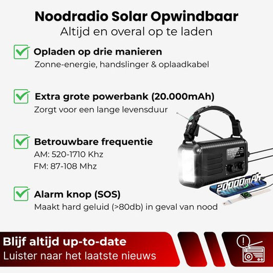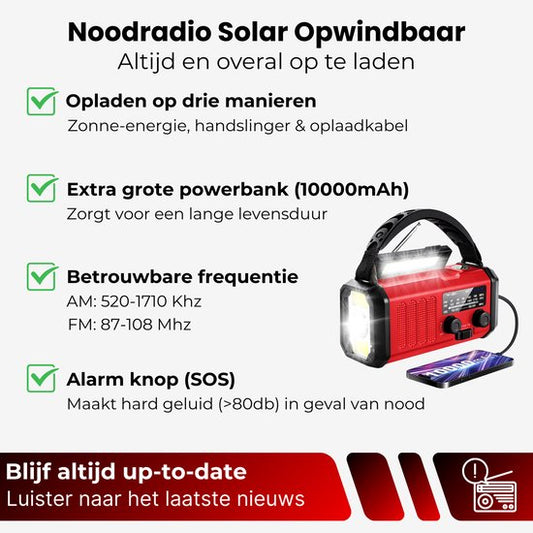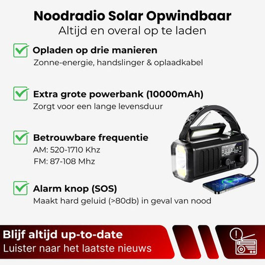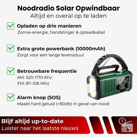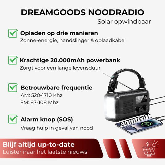 DreamGoods 10.000mAh Noodradio - Solar Opwindbaar - Solar Powerbank 10.000mAh - Denk Vooruit - Draagbare en Opwindbare Radio - Nood Radio - Noodradio dab Solar Opwindbaar
