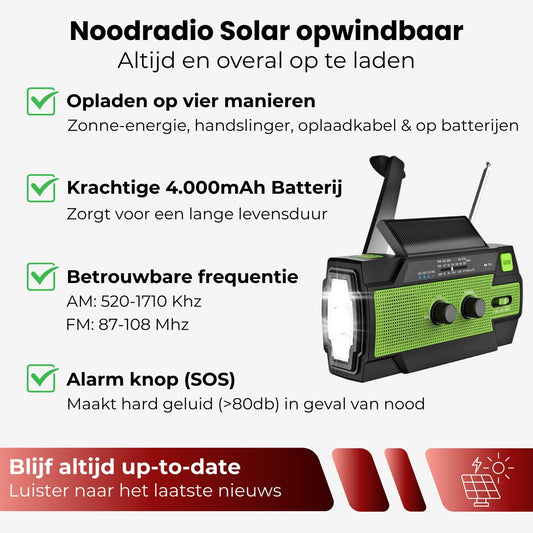 Noodradio 10.000 mAh – rood + solar-powerbank