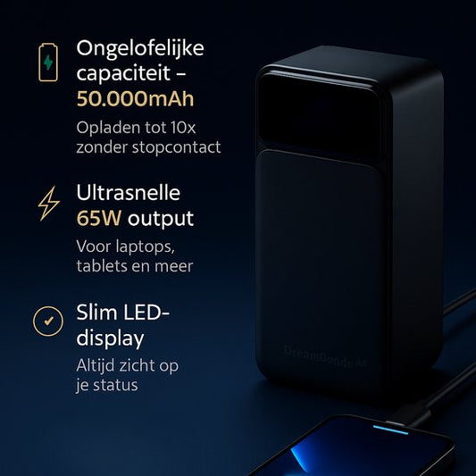 Powerbank 50.000 mAh – USB-C PD tot 65 W – compatibel met iPhone/Android, tablets & laptops
