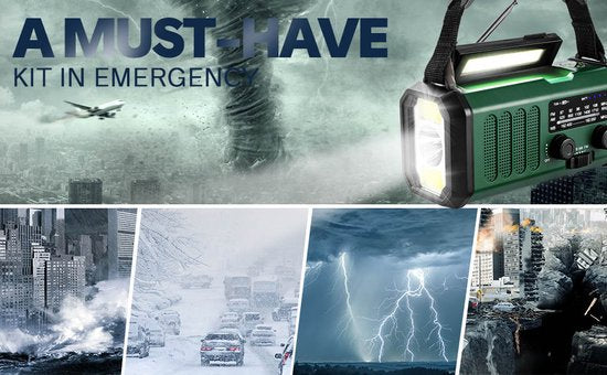 - 1× Radio met geïntegreerde powerbank 10.000 mAh (met LED-lamp)