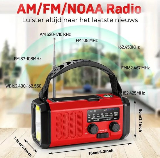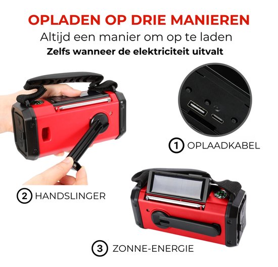 - 1× Noodradio met geïntegreerde powerbank 10.000 mAh