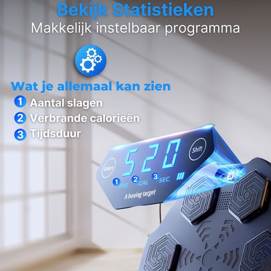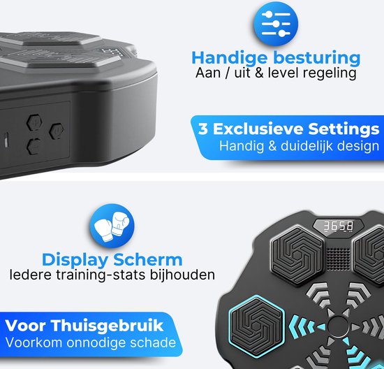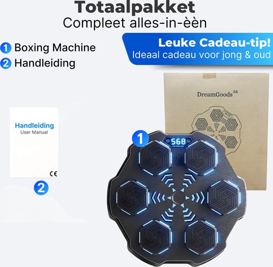 De DreamGoods trainingsmachine voor boksen biedt interactieve oefening met LED-lichtsignalen en Bluetooth-audio. Kies uit 8 trainingslevels en volg je sessie via het LED-display (o.a. tijd en slagentelling). Geschikt voor thuisgebruik om reacties op lichtsignalen te oefenen en variatie in je workout te brengen.