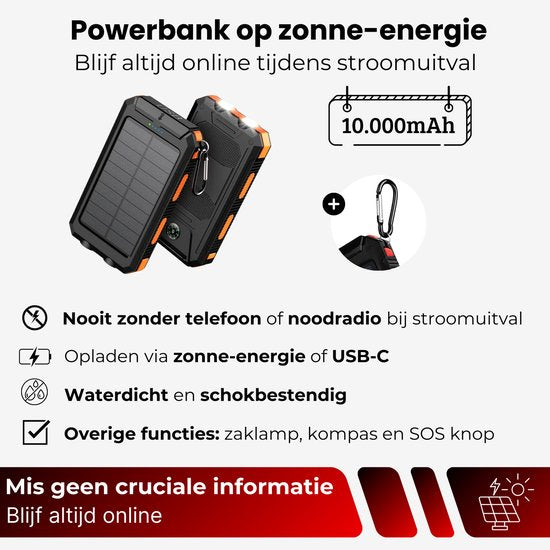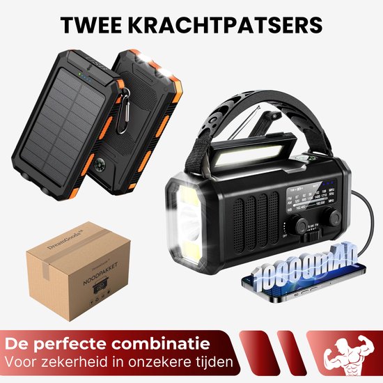 Dit DreamGoods noodpakket is samengesteld met praktische items voor momenten waarop netstroom niet direct beschikbaar is. Centraal staat een solar-/handopwindbare radio (10.000 mAh) met oplaadfunctie, zodat je radio kunt luisteren en kleine apparaten kunt bijladen wanneer dat nodig is.