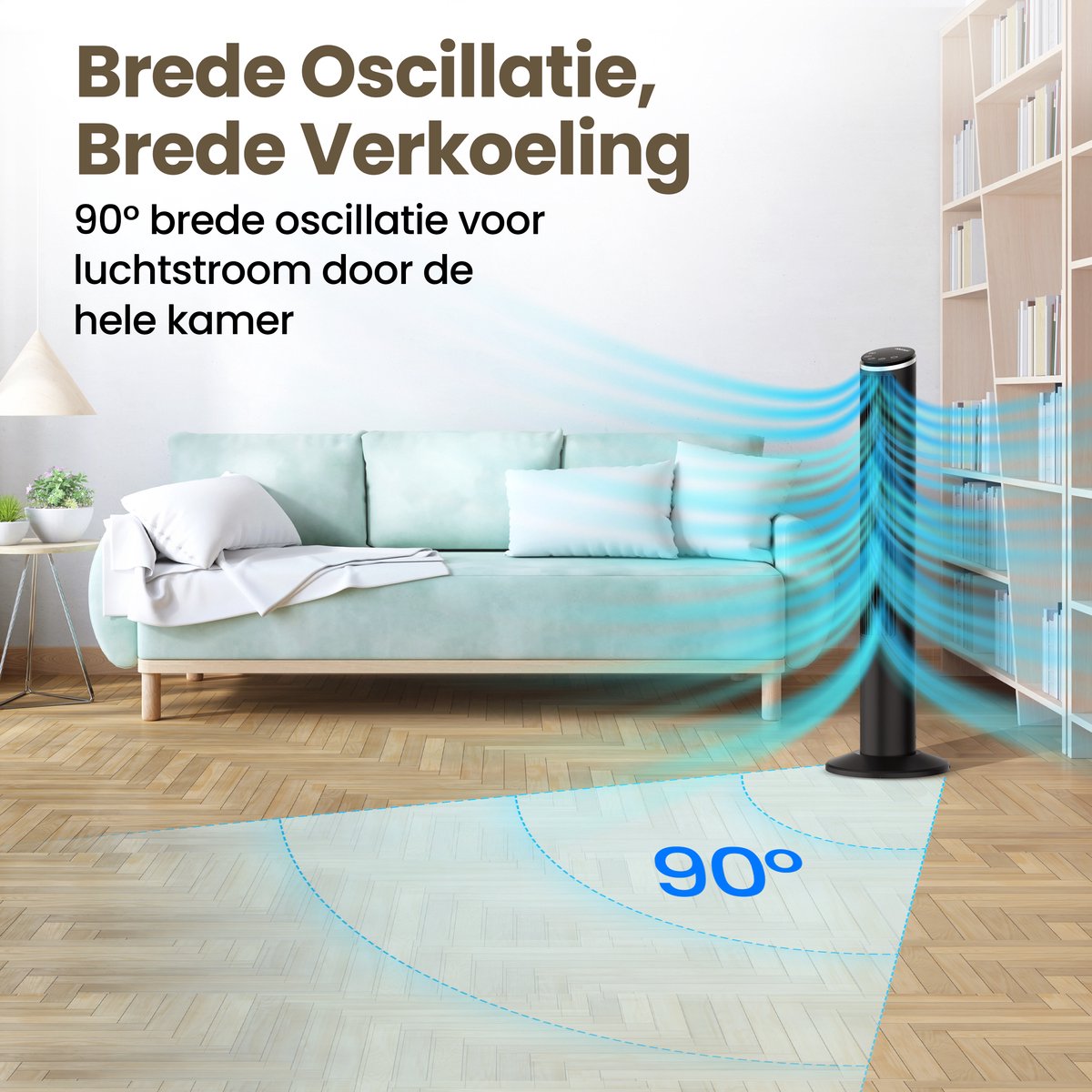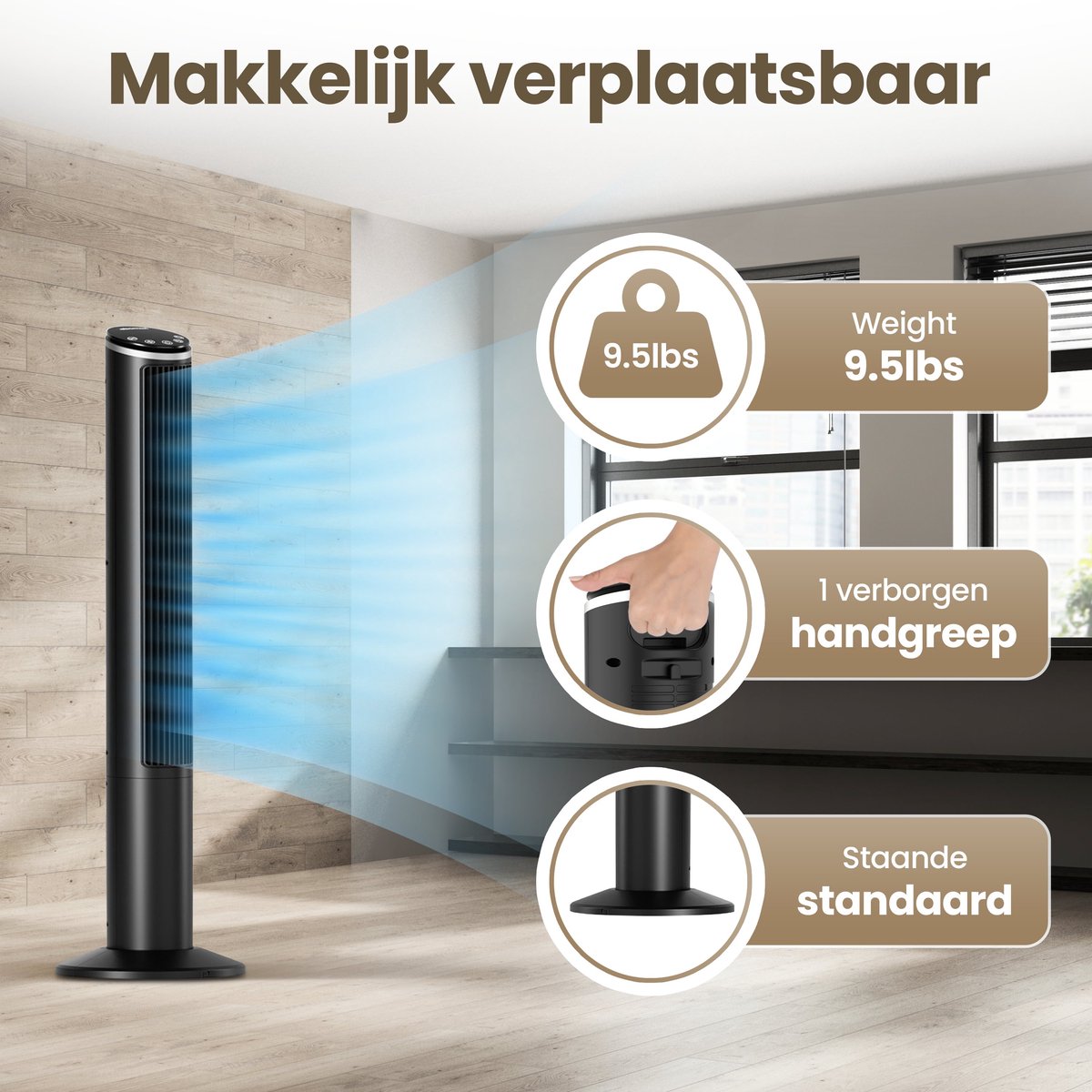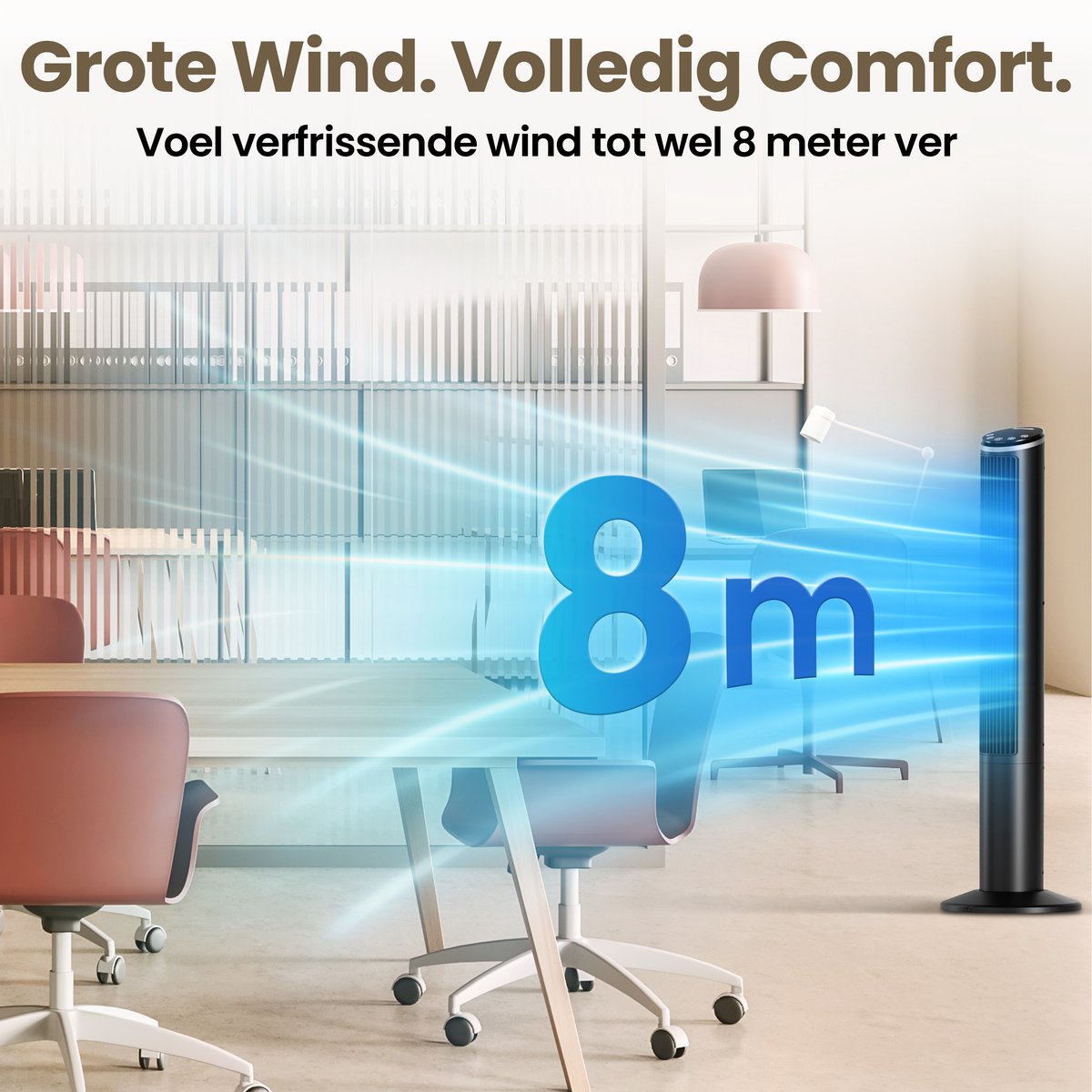 Het LED-display en de afstandsbediening maken bedienen eenvoudig; de timer helpt energie te besparen wanneer je de ventilator niet meer nodig hebt.