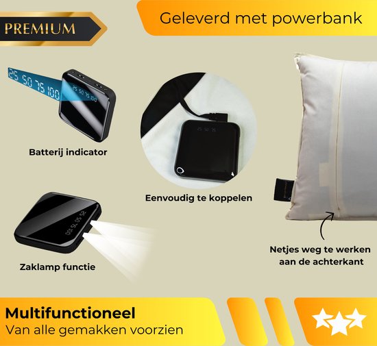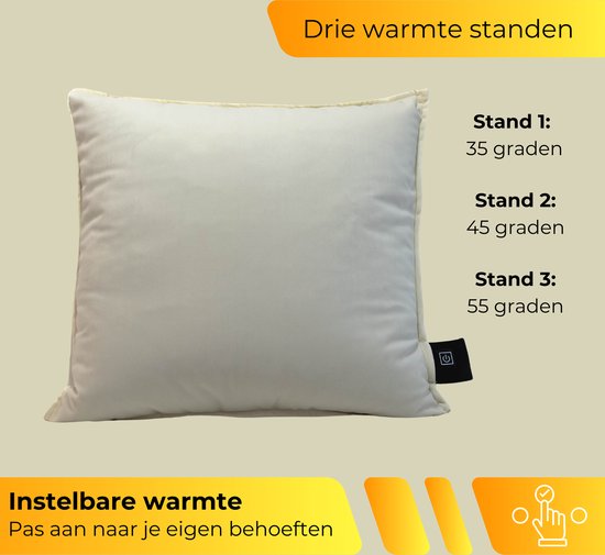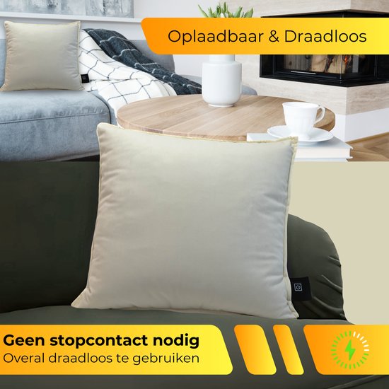 Het DreamGoods warmtekussen (45 × 45 cm) biedt comfortabele, draadloze warmte dankzij de meegeleverde powerbank. Kies uit drie warmtestanden en geniet van het zachte materiaal voor extra comfort op de bank, in bed of onderweg. De automatische uitschakeling draagt bij aan zorgeloos gebruik.